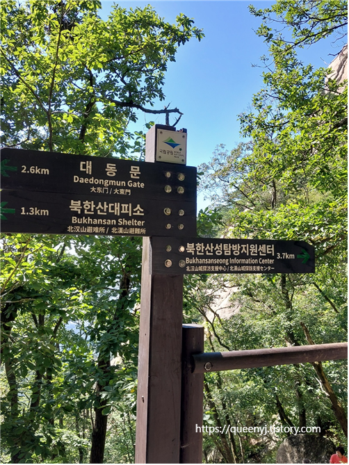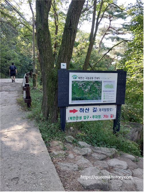 하산 길은 완만한 등산 길인 대동문의 반대편으로, 북한산성탐방지원센터로 가자고 결정했습니다. 가파르지만 길이가 짧아서요.
