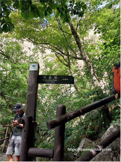 어렵지 않은 긴 계단을 오르니 백운대가 0.4km.